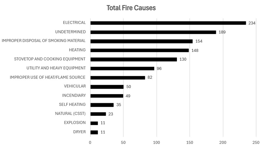 The Hot, Hard Truth: Habitual Mistakes and Preventable Fire Causes in the State of Wisconsin By: Don VanOss, Midwest Consulting & Associates, LLC I. Introduction Fires across Wisconsin often originate from ordinary, everyday activities that most people never imagine could lead to disaster. The prevailing mindset—“It won’t happen to me”—continues to fuel preventable losses across the state. Over the past two decades, Midwest Consulting & Associates, LLC (MCA) has conducted thousands of fire investigations throughout Wisconsin. Drawing from this extensive experience, MCA has compiled and analyzed a dataset of fire causes from 2004 through 2024, with this article focusing on the most accurate and verifiable data collected between 2017 and 2024. The goal of this article is to assist claim representatives and attorneys in the litigation process who are presented with fire claims. Using data collected across all regions of the state, this article provides a statistically meaningful, geographically diverse overview of the leading fire causes. The results can serve as a practical reference for insured homeowners, insurers, and counsel seeking data-driven insights into fire prevention and preparedness. While national standards and classification systems for fire causes exist, this paper intentionally uses terms and categorizations that are straightforward, relatable, and understandable to the general public. By bridging technical accuracy with public accessibility, MCA aims to transform fire investigation findings into actionable knowledge that reduces risk and saves lives. From an insurance and investigative standpoint, the data indicates that most fires show no evidence of arson, liability exposure, or subrogation potential. This finding underscores a critical need for improved internal insurance investigations and for greater collaboration between the private and public sectors to share verified information. Ultimately, fire prevention begins with education and transparency. The causes presented in this study, ranging from cooking and smoking to heating, electrical, and natural events, reflect real and preventable incidents. MCA believes that the responsibility to prevent future fires lies not only with the public but also with those tasked with educating it. The greatest failure is not negligence itself, but the lack of shared knowledge that allows it to persist. II. Overview Founded in 2004, MCA has completed thousands of fire investigations across the Midwest under the leadership of Don VanOss, Owner and Lead Investigator. The data collected and analyzed since 2017 was gathered with the assistance of Adam Vogelsang, CFI, of Forensetec, Inc. Each investigator independently reviewed every fire claim. A qualified fire investigator applies a systematic and scientific approach to determine both the origin and cause of a fire. This process requires a comprehensive understanding of fire dynamics, building construction, and ignition sources. In addition, strong knowledge of legal procedures, fire codes, and reporting standards, along with the ability to serve as an expert witness in court, are essential skills that distinguish a professional investigator. Throughout thousands of investigations, MCA has identified a significant lack of public awareness of the most common causes of fires. It is concerning that findings from private-sector investigations are often kept secret, limiting opportunities for public education and prevention. The goal of any fire investigation should extend beyond identifying the cause; it should also contribute to public knowledge and help prevent similar incidents. While many fires are attributed to homeowner negligence, MCA believes greater accountability lies with the investigative and educational systems. Investigators who have conducted countless examinations have not collectively provided a centralized, data-driven resource identifying common fire causes. In this regard, the responsibility rests more with the educator than the uneducated. III. Existing Data Gaps and Reliability Fire departments, particularly volunteer-based agencies, play a vital role in collecting data on fire causes and prevention. However, many lack the specialized training, education, and experience necessary to conduct scientifically sound investigations or provide reliable findings. MCA advocates for stronger collaboration between the private and public sectors to bridge these knowledge gaps and ensure the public receives accurate, actionable information. Data accuracy remains a persistent challenge in both public and private fire investigation sectors. In many cases, inadequate training and failure to adhere to the scientific method result in inconsistent or unreliable reporting. The scientific method for fire investigations is outlined in the National Fire Protection Association (NFPA) 921 Handbook. This article shows the process of this method. Another factor influencing data reliability is the financial incentive structure inherent in private investigations. Independent investigators often represent clients pursuing or defending subrogation claims. In a profit-driven environment, insurers may feel the need to keep investigative results confidential, and thus, many causes may not be made available to the public. A rapid and well-coordinated response following a fire loss is essential. Prompt arrival at the scene allows investigators to secure the origin area, preserve evidence, and initiate timely mitigation efforts elsewhere. However, pressure to reach quick conclusions, often driven by scheduling or restoration demands, can lead to premature determinations that compromise the accuracy of origin and cause analysis. IV. Methodology For over two decades, MCA has gathered extensive data on numerous factors related to fire investigations. To identify the most common causes of structural fires across Wisconsin, MCA conducted an in-depth review of eight years of investigation reports, en