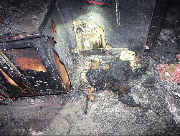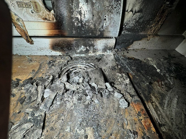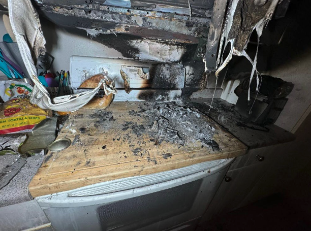 Simple household habits can greatly reduce the risk of stovetop fires. Avoid using the stovetop as a countertop for storage, keep combustible materials at least fifteen to eighteen inches away from the sides and top of burners, and always double-check that burners are turned off after cooking. By adopting these basic precautions, homeowners and occupants can significantly reduce their risk of a preventable, potentially tragic stovetop fire. MCA has observed a troubling trend of homeowners using their stovetops as counter space. A quick search on Amazon for “stovetop cover board” reveals numerous options, including wooden boards designed to sit on top of a stovetop when it is not in use. The problem is that placing any combustible material directly over a potential ignition source creates a serious fire hazard and significantly increases the risk of a preventable stovetop fire. The board increases counter space, but the photographs below show exactly what happens when a burner is accidentally turned on with the board in place. This fire was caused by the homeowner accidentally turning on the back burner knob when placing grocery bags against the back panel.