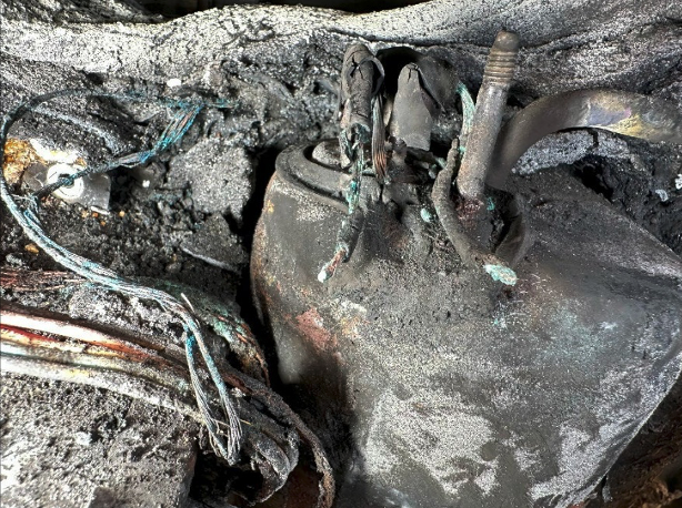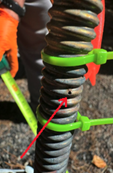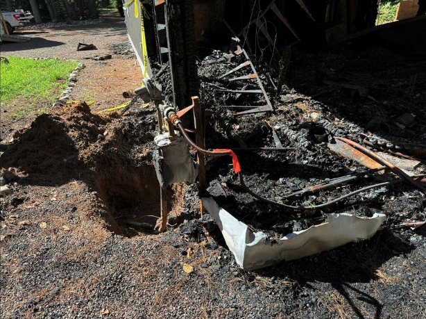 iv. Natural Gas (CSST) (1.9%) Gas corrugated stainless steel tubing (CSST) fires occurred most frequently during Quarter 3 of the year (78%). This timing aligns with Wisconsin’s stormiest months, when lightning activity is most common. During a nearby lightning strike, electrical energy can be introduced into a building’s grounding system. If CSST is not properly bonded, that energy can arc to the tubing, causing pinhole perforations that allow natural gas to escape and ignite. Prevention Tip: Ensure CSST systems are installed and bonded in accordance with manufacturer specifications and applicable codes. Periodic inspections of gas lines, particularly following severe storms, can help identify damage early. The following photographs show an unbonded CSST Gas pipe. A nearby lightning strike to a large tree traveled underground to this unbonded CSST pipe, creating a pinhole and allowing more pressurized gas to fuel the fire.