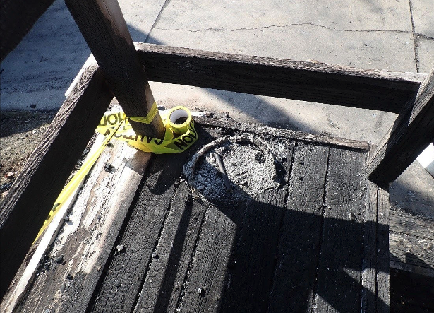The fire represented in the photograph below was caused by a cigarette discarded into a planter filled with dry vegetation. The uninsured tenant routinely extinguished his cigarettes in the potted plant, creating a consistent ignition hazard.